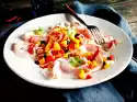 Take the cake out of the oven and let it cool down. Then cut into pieces and sprinkle with sugar crystals