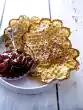 Scarcely 2⁄3 Spread the crumbled dough on the tray and press it on. Sprinkle 1 tablespoon of flour over the rest of the dough and tilt the bowl so that the crumbles do not stick together. Spread the jam on the dough base.