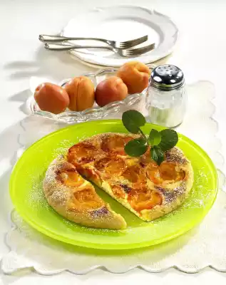 Wash, halve and stone fresh apricots. Thinly grease the edge and bottom of a medium sized coated pan with oil and heat it up