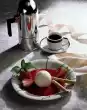 Chop the chocolate and melt over a warm water bath. Spread the liquid chocolate on the parfaits and smooth it down. Cover with the remaining apricots and sprinkle with the rest of the meringue. Serve immediately
