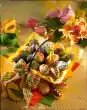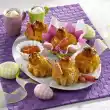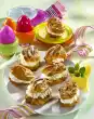 Put the cake in a cool place for about 3 hours. Knead marzipan, icing sugar and food colouring. Form about 16 small turnips from the marzipan and press a pistachio nut on the end. Turn the cake out of the tin, sprinkle with the remaining pistachios and crumbs and decorate with the turnips. Serve with lemon balm if desired. Makes about 15 pieces