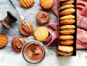 For the cream, whisk butter and 1 tablespoon icing sugar with the whisk of the mixer for about 4 minutes until foamy. Stir in 100 g apricot-caramel sauce by the spoonful. Pour into a piping bag with a perforated or star-shaped spout and squirt onto the smooth underside of the macarons.