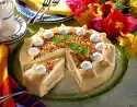 Close the edge of the mould around the cake base. Whip the champagne (or the same amount of water) and cream powder at the highest setting for approx. 3 minutes until frothy. Stir in flavours (capsules are enclosed with the packs). Whip the cream until stiff, allowing the cream firmer to trickle in. Fold into the cream. Spread on the cake base. Chill for approx. 3 hours