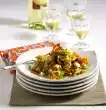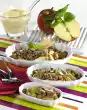 Peel the onion. Finely dice onion and ham. Roast the nuts in a pan without fat, take them out. Heat the oil in the pan. Fry ham in it until crispy. Fry the onion briefly. Deglaze with vinegar. Season with pepper, sugar and possibly salt. Stir in the nuts and let it cool down a little