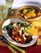 Season broccoli with salt, pepper and sugar. Cut open the duck breast. If necessary, deglaze with a little water, season to taste and pour over the meat. Serve everything. Served with: Rice