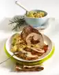 Cover the lower half of the roll with lettuce and cucumber. Add fish and yoghurt. Sprinkle sprouts on top, place lid on top and serve.