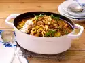 Wash coriander, dab dry, pluck leaves from the stems and chop coarsely. Fold in coriander and sprinkle with cashew nuts.