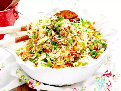 Mix well cabbage, carrots, rice, spring onions, sunflower seeds, almonds and pineapple. Mix in the vinaigrette. Leave to stand for about 30 minutes, stirring several times. Wash parsley, shake dry and chop finely. Season salad again with salt and pepper. Arrange in a bowl sprinkled with parsley.