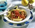 Prepare the pasta in boiling salted water according to the instructions on the packet. In the meantime, peel the garlic and press it through a garlic press. Cut the chilli lengthwise and scrape out the seeds. Cut the pod into rings. Clean the leek, cut diagonally into pieces and wash.