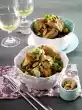 Season with salt and pepper. Add garlic, ginger and chilli to the frying fat. Deglaze with stock and coconut milk. Cover and cook for another 10 minutes. Stir in curry paste and sauce thickener. Bring the sauce to the boil again and season to taste.