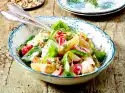 Wash the potatoes and cook in plenty of boiling water for about 20 minutes. Rinse under cold water, drain, peel and slice. Wash the asparagus. Peel white asparagus. Cut the woody ends off the green and white asparagus. Cut the asparagus very diagonally into thin slices.