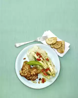 Cook in the preheated oven (electric cooker: 175 °C/ convection oven: 150 °C/ gas: level 2) for 20-30 minutes. Meanwhile wash meat, pat dry and season with salt and pepper. Mix breadcrumbs and ##almonds##.