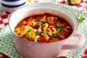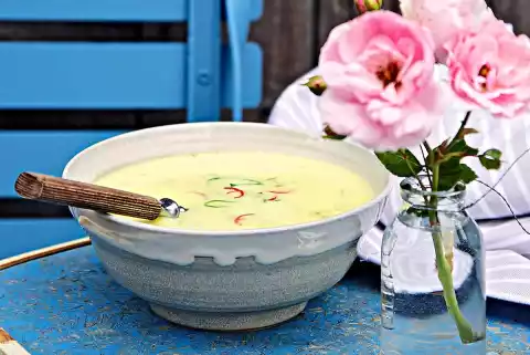 Heat the oil in the pot. Sauté the asparagus, spring onions and chilli in it. Sprinkle with curry and sauté. Add asparagus stock and coconut milk and bring to the boil. Season with salt and pepper. Cover and simmer for about 3 minutes. Stir the starch and 1 tbsp. water until smooth, add to the soup and simmer for about 5 minutes. Season to taste with salt, pepper and lime juice (do not boil any more, so that the soup does not settle).