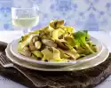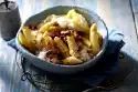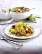 Wash the shrimps and pat them dry. Peel and finely chop the onion. Cut the upper asparagus halves into large pieces. Place two portions of Maultaschen in plenty of boiling salted water and cook for 8-10 minutes. Drain and keep warm