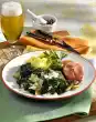 Wash and drain the asparagus. Peel the white asparagus and cut off the lower woody ends. Peel only the lower third of the green asparagus and cut off the woody ends.