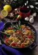 Heat the remaining oil in a pan and fry the meat in it. Season with salt and pepper. Shortly before the end of the cooking time, add the cheese cubes to the rice and stir in to melt. Mix asparagus with the rice.