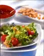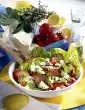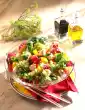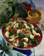 Cook the white asparagus pieces for about 15 minutes in boiling salted water. Add green asparagus after 5 minutes cooking time and cook along. Drain and rinse with cold water. Clean the pointed cabbage, cut into strips and wash.