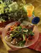 Arrange the salad on a plate. Sprinkle with coarsely grated parmesan and chervil leaves.