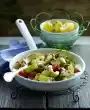 Wash the asparagus and cut off the woody ends generously. Cut the asparagus diagonally into long thin slices. Cook in boiling salted water with 1 tsp. sugar for about 2 minutes. Drain, quench and drain well.