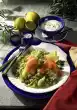 Wash, clean, quarter, seed and dice the tomatoes. Drain the mushrooms. Wash basil, pluck leaves from the stalks and, except for some for garnishing, cut into strips.