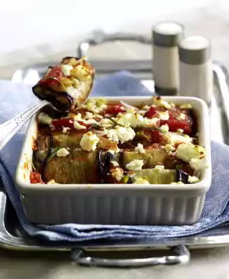 Spread the bulgur mass on the aubergine slices, roll them up and place them close together in a greased casserole dish. Pour tomato sauce over it. Sprinkle with the rest of the cheese. Bake in a hot oven for 15-18 minutes.