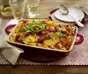 Layer the vegetables and sauce in a greased casserole dish. Grate the cheese and sprinkle over the casserole. Bake in the preheated oven (electric cooker: 200 °C / convection oven: 175 °C / gas: level 3) for approx. 20 minutes