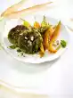 Wash the marjoram, shake dry and pluck leaves from the stalks. Spread the onions on the turrets. Garnish with marjoram. Arrange 2 turrets on plates. Add a dash of quark and sprinkle with lemon peel.