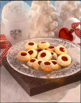 Warm the jelly briefly and stir until smooth. Using a small spoon, fill a little jelly into each cookie. Bake one after the other in a preheated oven (electric cooker: 175 °C/ convection oven: 150 °C/ gas: level 2) for about 15 minutes. Let them cool down on a grid and dust with icing sugar