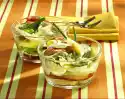 Steam the pears for about 1 minute. Sprinkle with lemon juice, remove pears from the stock. Briefly heat pear juice, white wine and vinegar in the pan with the roasting juices. Season with salt and pepper. Wash the lettuce leaves and pluck into small pieces.