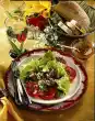 Drizzle with the vinaigrette. Arrange salad on plates. Serve with baguette.