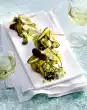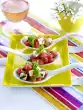 For the guacamole, wash the tomatoes, grate them dry and quarter them. Peel the shallot and cut into fine cubes. Cut 1 avocado in half, remove seeds and peel the flesh. Mash the avocado flesh with a fork.