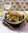 Clean the salad. Separate the lettuce hearts so that the remaining leaves on the stalk are still holding together. Wash the lettuce and drain. Cut the hearts into strips.