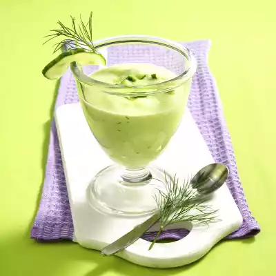 Wash, clean, peel and chop the cucumber. Wash dill, dab dry and chop coarsely. Chop avocado finely. Finely puree the cucumber, avocado, horseradish, dill, lime juice and buttermilk. Season to taste with salt and pepper.