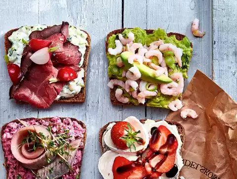 Spread black bread with the cream. Spread icy sea shrimps on top.