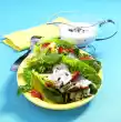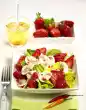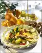 Clean, wash, drain and cut the salad into strips. Peel and chop the onion. Clean, wash, quarter and seed the tomato. Finely dice the flesh