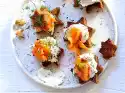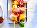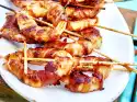 Mix breadcrumbs and pepper. Wash the meat, dab dry and coat each fillet with mustard. Cut the fillets into 5 pieces each. Wrap 1 bacon slice around each piece. Turn the rolls in breadcrumbs and put them on an oiled baking tray.