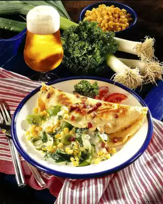 Clean, wash and cut the leek into rings. Drain the corn kernels. Steam leek in hot oil for approx. 8 minutes, add corn and heat. Add stock and cream and bring to the boil once. Stir in sauce thickener. Season with salt, pepper and thyme.