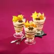 Whip 100 g sugar and eggs with the whisk of the hand mixer until creamy white. Add warm butter while stirring constantly. Fold in ground almonds. Grease baking frame (23 cm Ø; 7 cm high) in star shape. Place the base on baking paper and fold the excess paper closely along the frame. Pour the dough into the frame and bake in a preheated oven (electric cooker: 175 °C/ convection oven: 150 °C/ gas: level 2) for approx. 25 minutes. Remove the cake, spread compote on the cake and bake for another 10 minutes. Take out and put in a cool place. Soak gelatine in cold water. Whip the cream until stiff, adding 100 g sugar. Squeeze the gelatine and dissolve in warm water. Stir 1 tablespoon of sour cream into the gelatine. Quickly stir the gelatine and sour cream mixture into the remaining sour cream. Fold in the cream. Spread the cream and sour cream over the cake and chill for approx. 3 hours. Colour each 50 g marzipan with red or green food colouring. Roll out on a work surface sprinkled with icing sugar and cut out 7 stars.