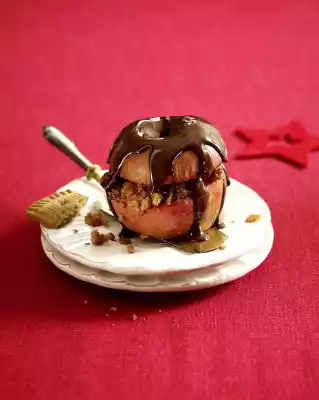 Place apples in an ovenproof dish and bake in a preheated oven (electric cooker: 200 °C/ convection oven: 175 °C/ gas: level 3) for 30-40 minutes. Place the apple lids on the apples after half the cooking time. Arrange baked apples on plates