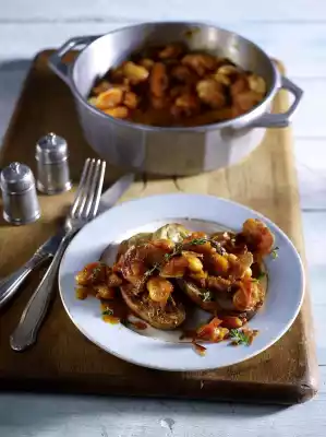 Wash the thyme. Set aside a little to garnish, pluck the rest. Chop the apricots. Peel and chop onion. Fry in hot oil. Sweat tomato paste with. Add tomatoes with juice, apricots and thyme.