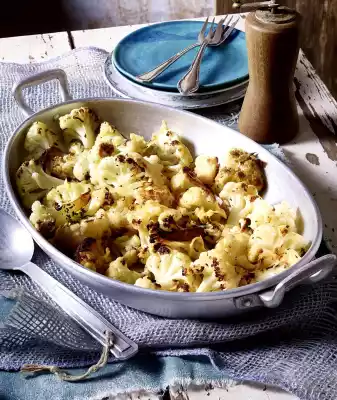 Clean the cauliflower, remove the florets from the stalk, wash and shake dry. Cut the florets into small pieces according to size. Sprinkle with oil, season with salt and pepper. Spread on a baking tray and cook in the preheated oven (electric cooker: 200 °C/ circulating air: 175 °C/ gas: see manufacturer) for about 30 minutes.