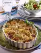 Cut cheese in half horizontally, divide halves into half moons. Whisk egg and milk in a deep plate. Peel and grate onion, add to egg. Season with salt, pepper and nutmeg. In another plate, spread flour, in another breadcrumbs. Turn cheese slices first in the flour, then in the egg milk and finally in breadcrumbs. Press the breadcrumbs well. Heat the oil in a large pan. Fry the cheese for 1-2 minutes on each side until golden brown. Let it drip off on kitchen paper.