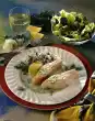 Sprinkle thawed fish with lemon juice. Place in a small casserole dish, pour sauce over it. Sprinkle with crushed pink pepper. Bake in a preheated oven (electric: 200 °C/ gas: level 3) for 20-25 minutes.