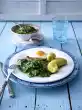 Cook in the preheated oven (electric cooker: 200 °C/ convection oven: 175 °C/ gas: level 3) for approx. 40 minutes. In the meantime, peel the potatoes, quarter them lengthwise and cut into slices. Clean, wash and cut the peppers into thick strips.