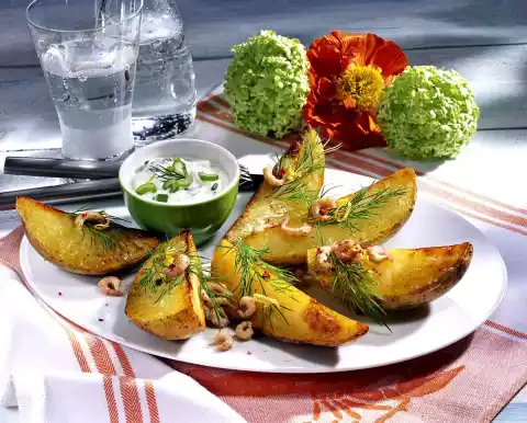 Wash the crabs and let them drain. Mix sour cream, quark, spring onions, chopped dill and half of the crabs. Season to taste with salt and pepper. Pluck the rest of the dill pennant. Serve the potatoes in portions with the dill pennant, crushed pepper and the rest of the prawns. Sour Cream extra rich