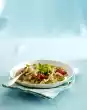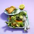 Cut the fat and tendons from the lamb salmon. Cut the meat into 4 pieces. Cut rosemary twigs into skewers of equal length. Skewer 2 pieces of meat on each.