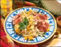 Wash and peel the pumpkin, cut out the core, cut the flesh into slices. Peel shallot, cut into fine rings. Mix pumpkin, shallot and spices in a bowl, season with salt and pepper. Wrap half of the mixture in a sheet of parchment and place on a baking tray. Bake in the preheated oven (electric cooker: 200 °C/ convection oven: 175 °C/ gas: level 3) for about 30 minutes