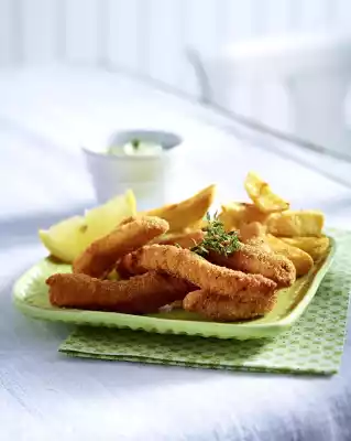Heat the oil in a pot to approx. 180 °C. Fry the salmon strips in it in portions for approx. 3 minutes each. Drain on kitchen paper