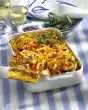 Put the puff pastry without baking paper into a greased quiche tin (approx. 26 cm Ø), prick several times with a fork and cover with the baking paper. Pour in dried peas and pre-bake the dough in a preheated oven (electric range: 200°C/ gas: level 3) for 25-30 minutes.