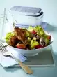 Mix lamb's lettuce, tomatoes and onions with the vinaigrette. Arrange the liver on the salad. Season vinegar stock with salt, pepper and sugar and drizzle over. Sprinkle with pine nuts. Serve with ciabatta.
